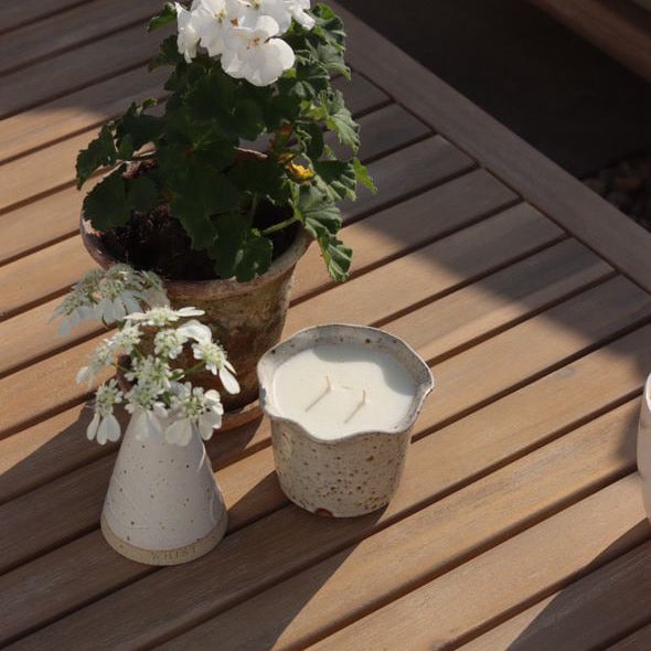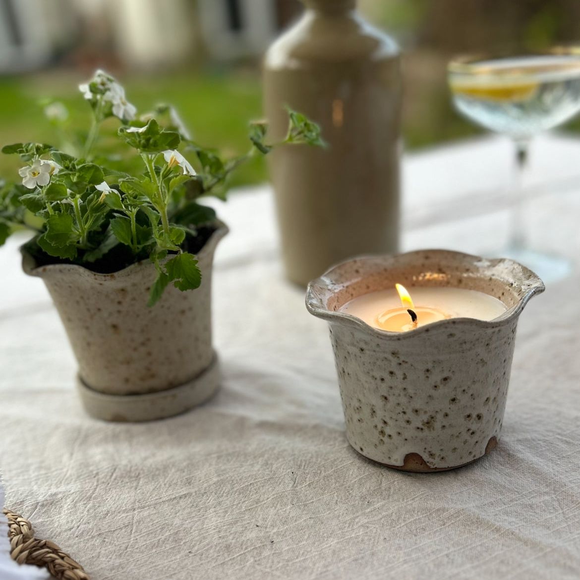 I worked with a local artisan potter to create this garden candle, and every one is unique, stylish and individual