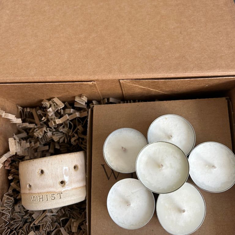 This gift set contains a tealight holder in the gorgeous peachy nude glaze, and 9 scented tealights in the essential oil blend of your choice. All boxed beautifully, ready to hand over to the lucky recipient